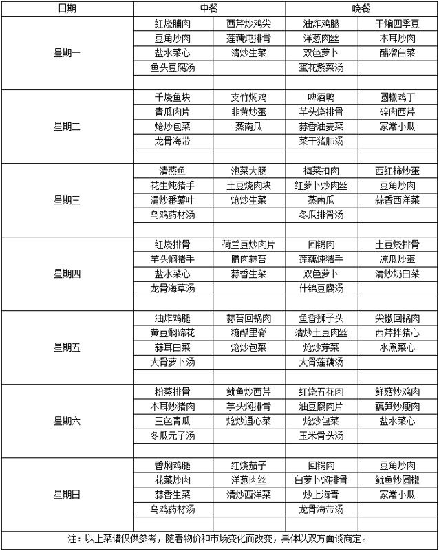 中、晚餐(各7元)任选二荤二素一汤,米饭任吃